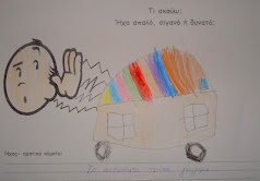 ΔΟΝΗΣΗ- ΗΧΟΣΜέσα από την ενότητα του σεισμού, ακούστηκε η λέξη "δόνηση". Ρώτησαν τη σημασία της λέξης. Μια απλή εξήγηση γιατί η κυρία βρέθηκε απροετοίμαστη.Κάπως έτσι μιλήσαμε για τη δόνηση.Ένα παιδί σε μία καρέκλα. Μια δύναμη πάνω στην καρέκλα και το παιδί άρχισε να δονείται. Ένα πανί που το κρατάνε δύο παιδιά και προκαλούν στο πανί μικρές και μεγάλες δονήσεις. Η ενέργεια προκαλεί δόνηση που είναι αόρατη, αλλά υπάρχει. Ένα γυάλινο μπολ, μια διαφανή μεμβράνη, μερικά πον πον και μια πηγή ενέργειας (μολύβι- ένα δάχτυλο). Παρατηρούμε τι συμβαίνει. Όταν χτυπάω σιγά πάνω στη μεμβράνη, όταν χτυπάω πιο δυνατά. Τι θα γίνει αν ρίξουμε πάνω στη μεμβράνη μια σταγόνα νερό; Τι θα γίνει αν η μεμβράνη δέχεται ενέργεια- χτυπήματα από τέσσερα σημεία; Ας το δοκιμάσουμε.Περάσαμε πάνω και κάτω από ένα σχοινί, προσπαθώντας να μη προκαλέσουμε δονήσεις.Τα παιδιά κρατήσανε ένα μεγάλο πανί, με μια μπάλα στη μέση. Προκαλέσαμε μικρές και μεγάλες δονήσεις, προσέχοντας να μη φύγει η μπάλα πάνω από το πανί.